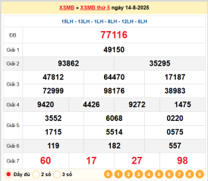 Dự Đoán Xsmb Ngày 15-08-2025. Chúng tôi sẽ cung cấp các cặp lô đẹp hoàn toàn miễn phí. Dựa trên kinh nghiệm nhiều năm trong việc soi cầu 247. Và sử dụng công cụ thống kê hiện đại nhất. Hy vọng rằng những con số chúng tôi đưa ra sẽ giúp anh em tham khảo khi tham gia trò chơi. XSMB hôm nay, xin mời anh em xem thêm các thông tin. Thống kê và chốt KQXS miền Bắc ngày hôm nay ở cuối bài viết nhé.